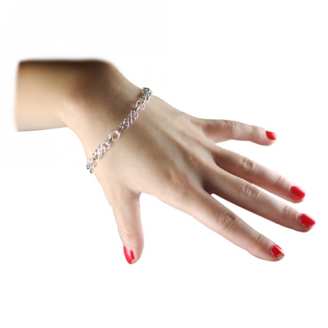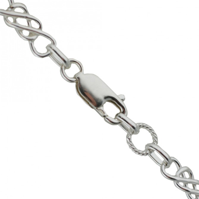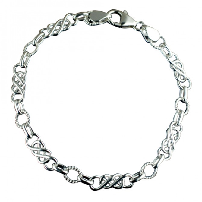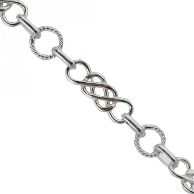 Sterling Silver twisted wire circle with elongated knot Chain bracelet 7.5 inches. Designed in Birmingham it comes to you polished and silver plated.