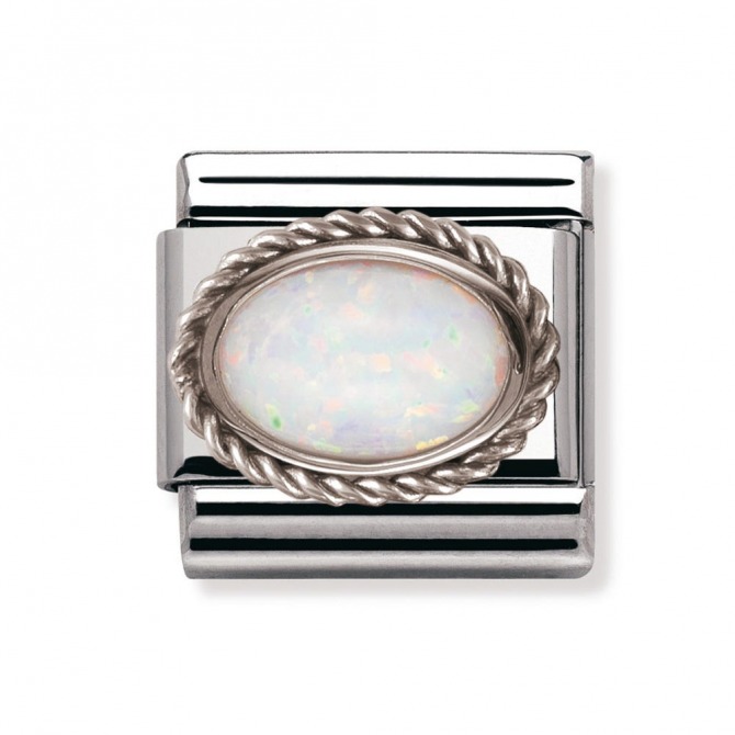 Original Charm for Nomination's Composable Classic Bracelet in stainless steel, sterling silver and oval opal. Also available in other coloured stones. Made in Italy. The perfect way to add precious details to your everyday look.