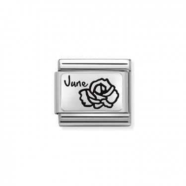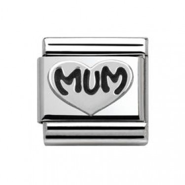 Original Nomination Classic Link in stainless steel and sterling silver with plate and black engraved WIFE text. Made in Italy. Choose this Link as a gift for an anniversary.