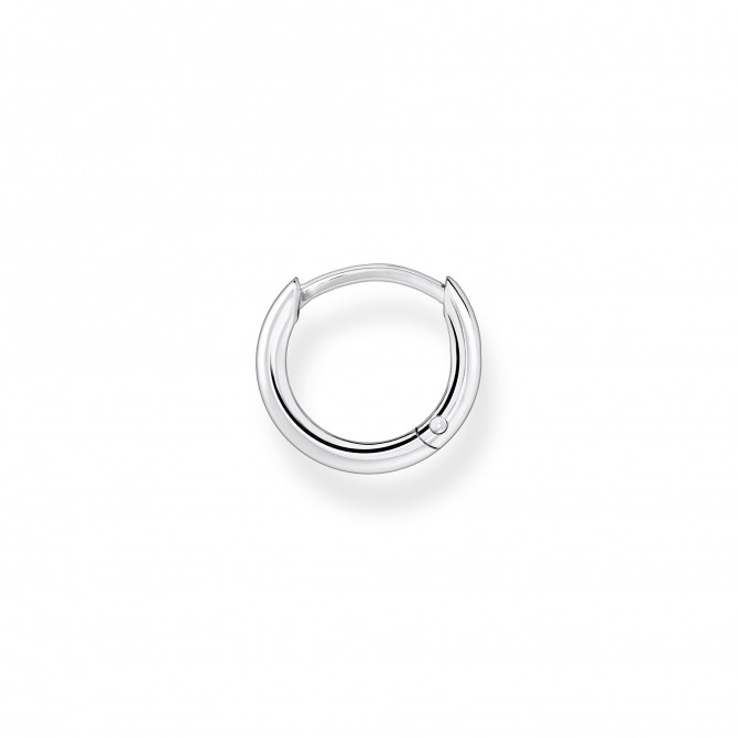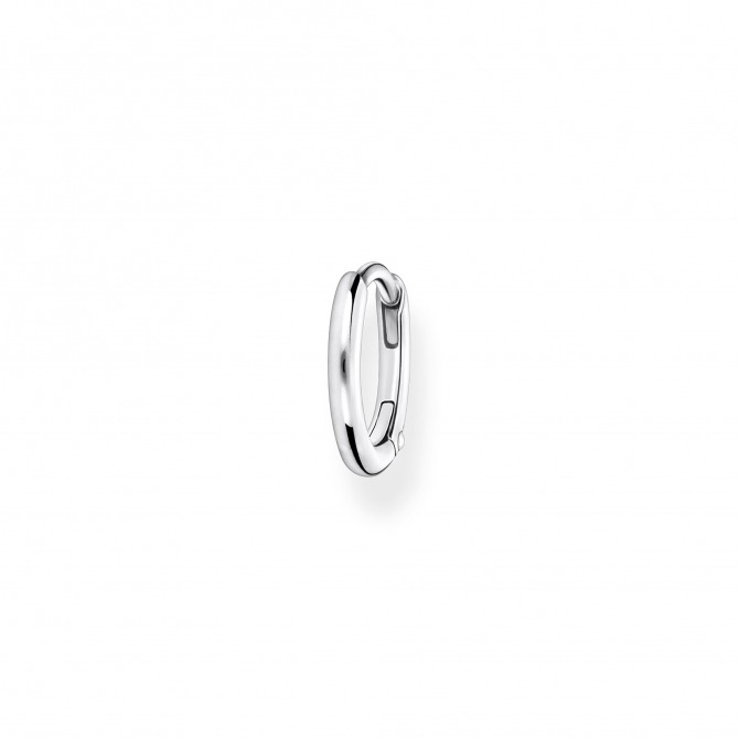 Cool elegance meets purist looks: This simple chunky hoop earring made from 925 Sterling silver sets highlights with its clean design. The outside diameter is 13,5 mm. The classical circular shape of the single hoop earring underlines every look: Combine it with other earrings from the Charming Collection to create beautiful Curated-Ears or wear it as a little extra to sparkling statement pieces. This hoop comes solo.