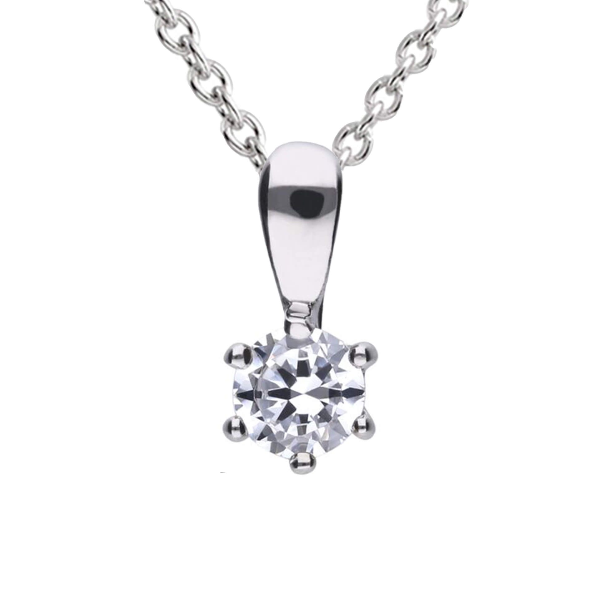 This classic six claw pendant is perfect for adding extra sparkle to your outfit. Crafted from sterling silver with a triple plated finish of palladium, platinum and rhodium for an almost life-long tarnish protection and featuring a beautiful Diamonfire cubic zirconia stone, which is cut specially with 57 facets just like a real brilliant cut diamond, this necklace will make a wonderful gift for a loved one! Features an extendable chain length of 43cm-45cm