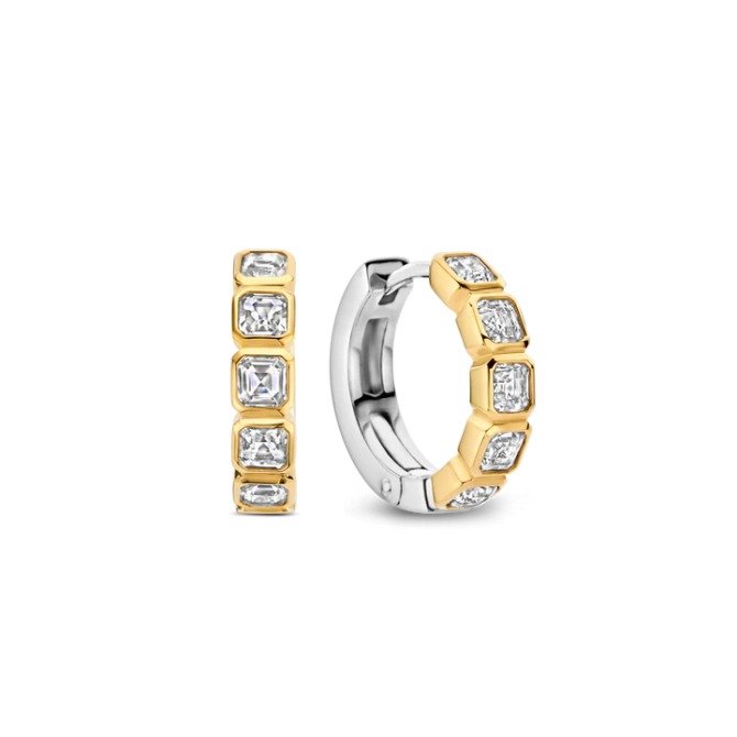 These TI SENTO gold-plated hoop earrings 7965ZY flaunt a stream of square cubic zirconia stones handset within a radiant yellow gold-plated setting. A striking blend of luxury and modern classic design. Crafted from premium 925 sterling silver and plated with radiant yellow gold, the luxurious arrangement of sparkling cubic zirconia stones adds an irresistible allure to these hoops, creating a captivating play of light and sophistication. Their timeless design ensures they seamlessly transition from formal occasions to everyday glam. Elevate your style with our dazzling hoop earrings, where the fusion of yellow gold-plating and cubic zirconia stones culminates in a statement piece that embodies pure luxury and enduring elegance. Like all our jewellery, these earrings are nickel-free and hypoallergenic, promising not just style, but also comfort and quality that stands the test of time.