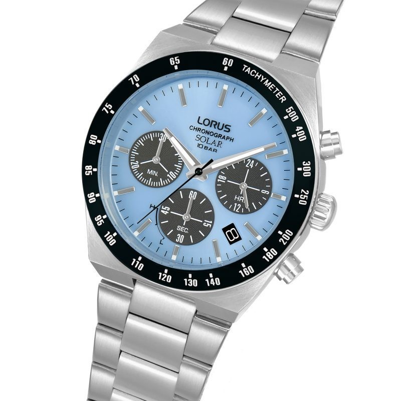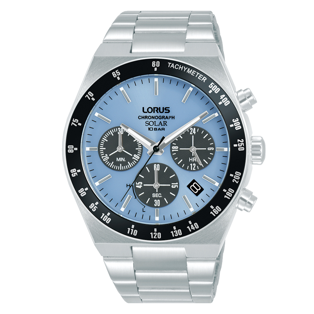 This Lorus Men’s Solar Chronograph combines reliable functionality with a bold design. The blue dial and contrasting black bezel with a stainless steel bracelet, offer a modern and dynamic look. Powered by any light source, for low maintenance wear. The luminous hands and markers provide clear visibility, even in low light. The chronograph function is designed for precise time measurement and has a tachymeter to calculate speed based on elapsed time over a known distance. With a water resistance up to 100 metres, it is ideal for swimming or everyday activities.