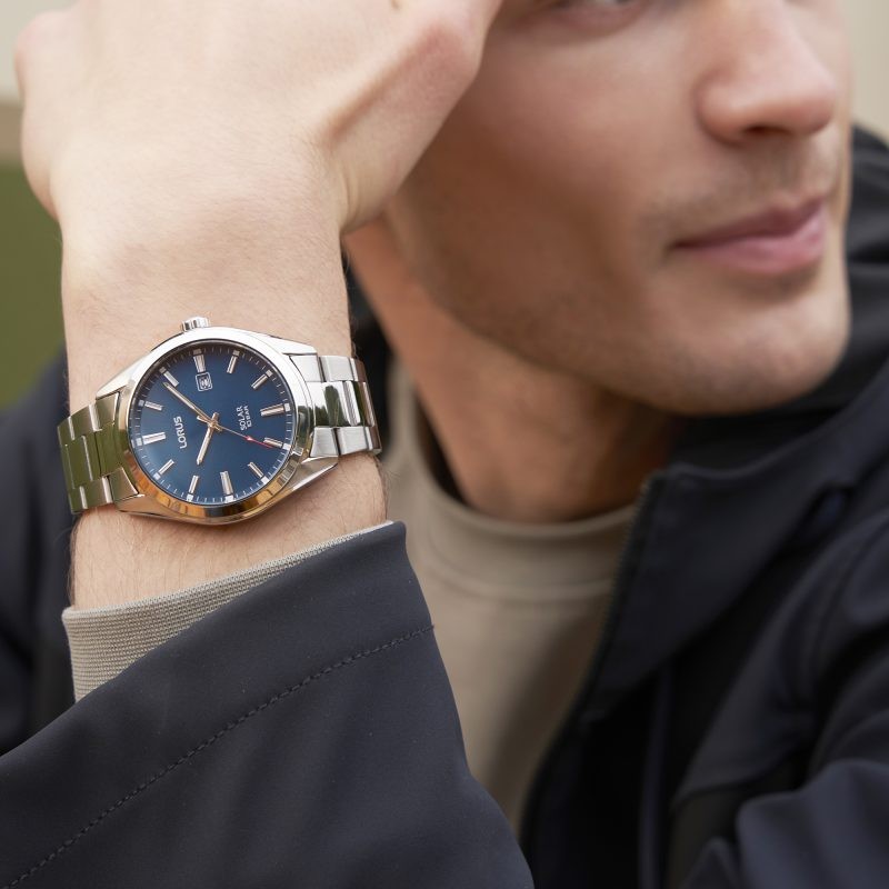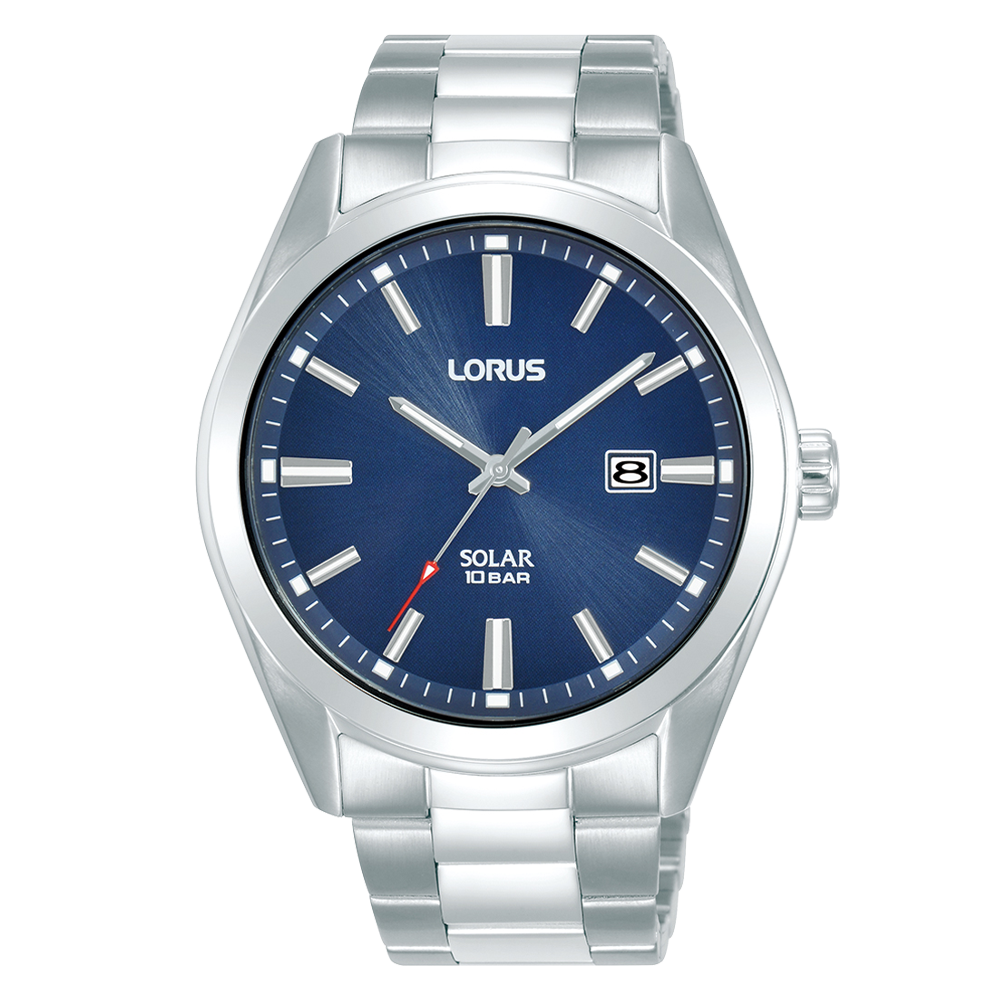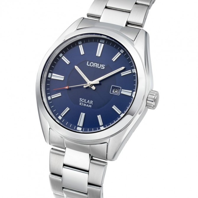 Solar charging from any light source – artificial and natural light – ensures both reliability and convenience. Showcasing a dark blue sunray dial, its stainless steel case combines durability with a sleek, contemporary look. The watch is complemented by a stainless steel bracelet; the finishing touch to its timeless design.