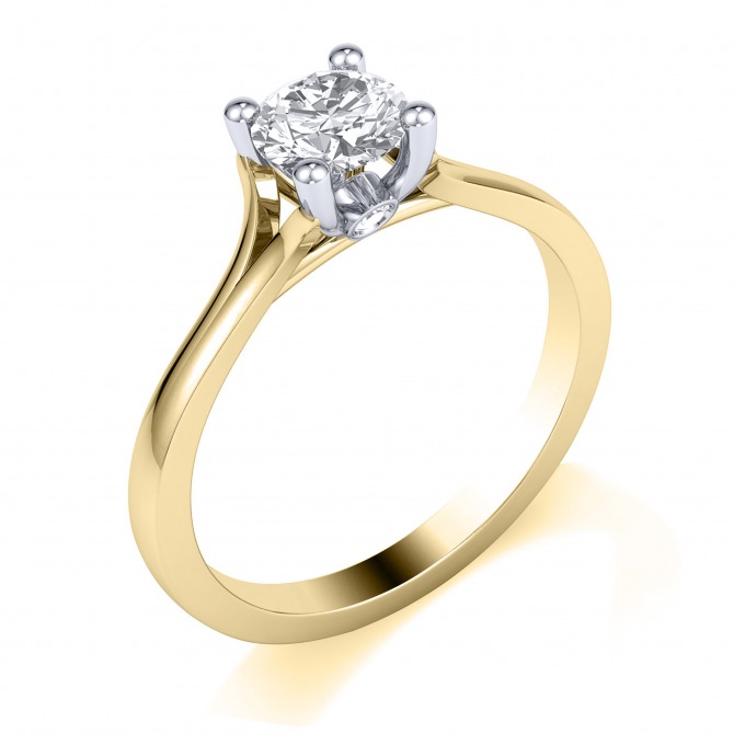 Solitaire cut lab grown diamond in a four claw setting, mounted on a 9ct gold ring. D-E. VS1 0.50ct.