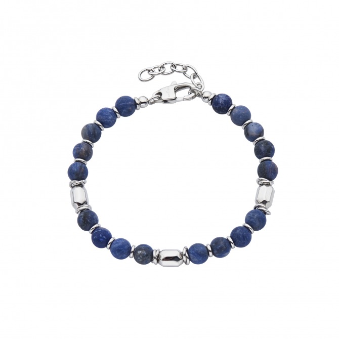 Stainless steel and blue lapis bead bracelet. Measures 21cm in length.