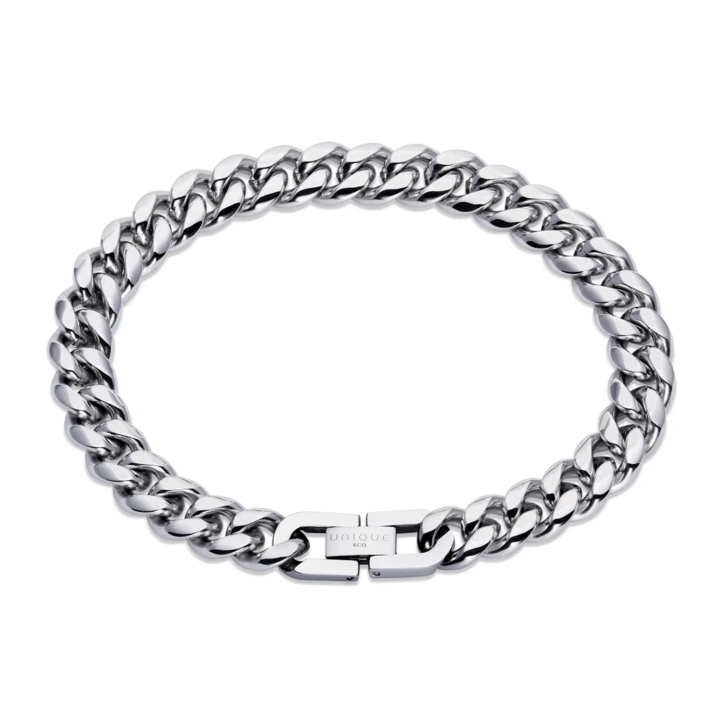 This stylish Unique & Co. curb bracelet features a stainless steel link design with a polished finish. Perfect for all occasions.