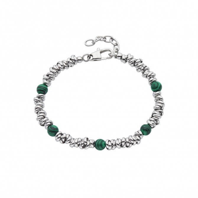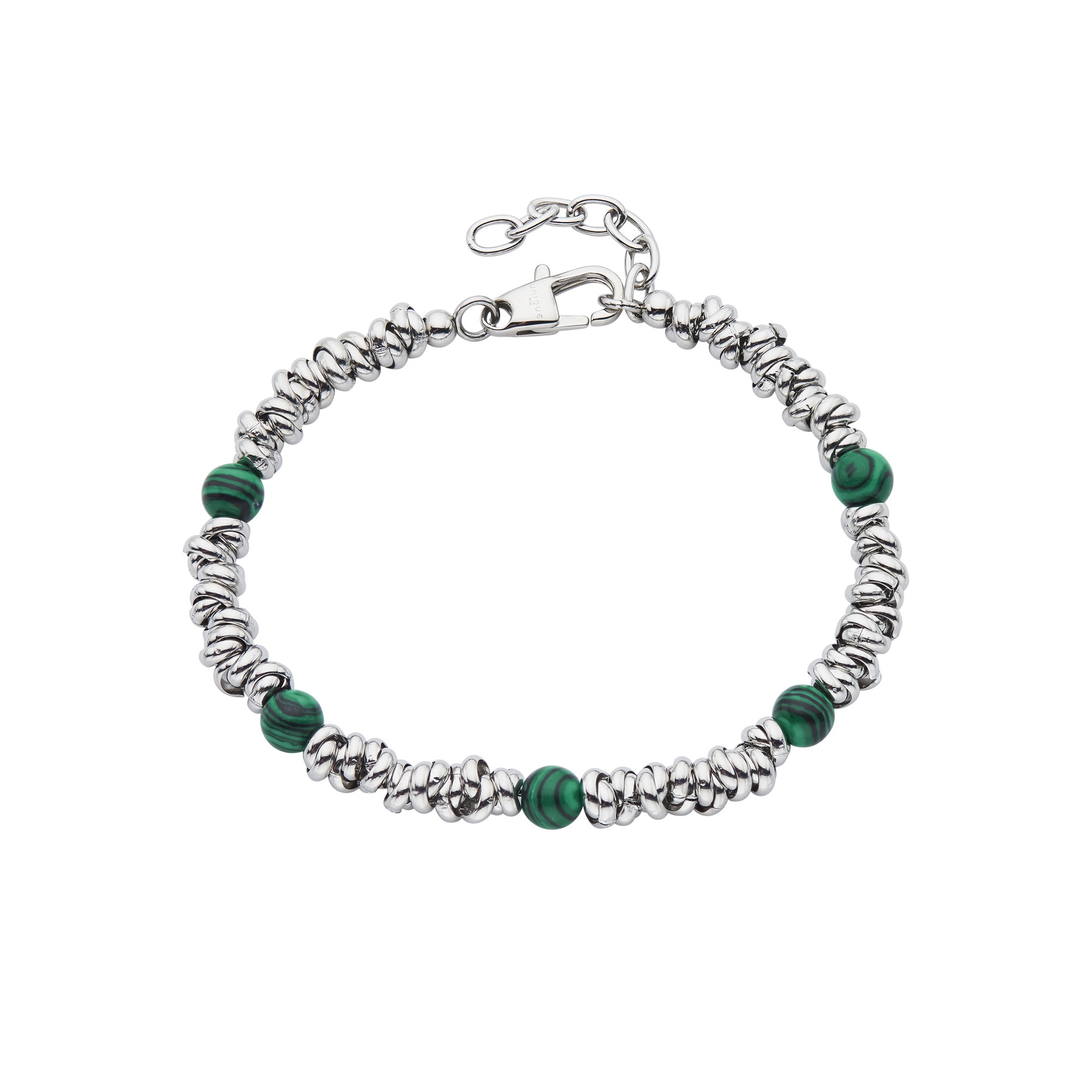 Stainless steel and malachite bead bracelet. Measures 21cm in length.