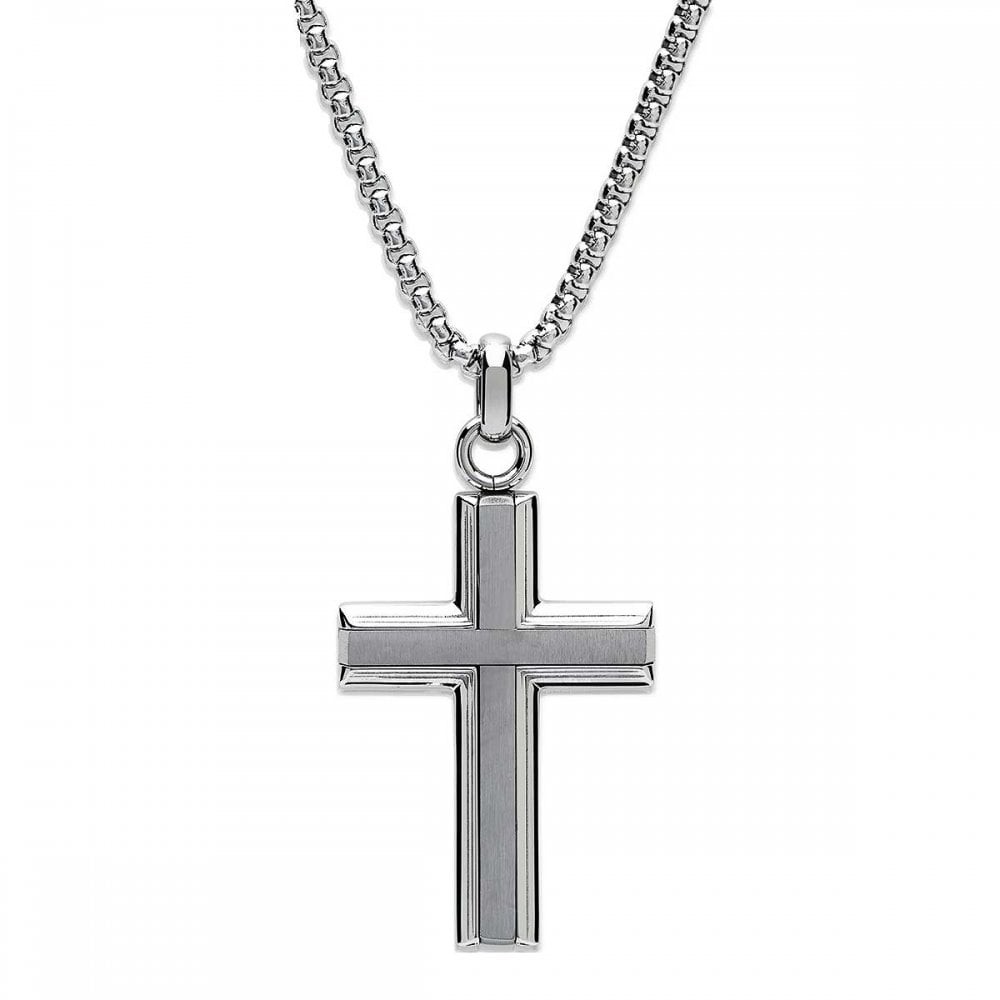 Stainless Steel Matt Polished Cross Pendant & Chain - 50cm