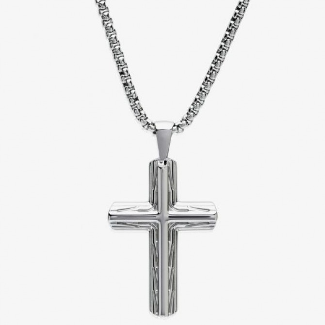 Stainless Steel Patterned Cross Pendant & Chain - 50cm