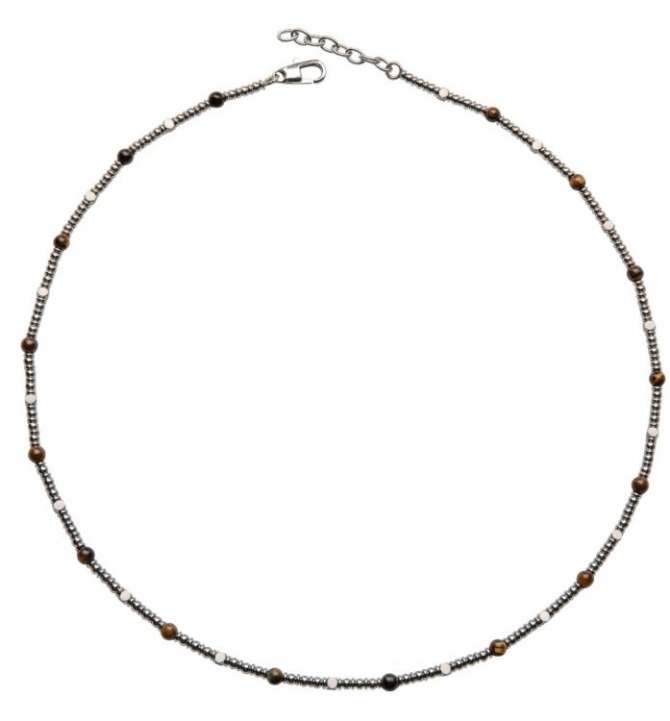 Stainless steel with tiger's eye bead necklace which measures 50cm in length.