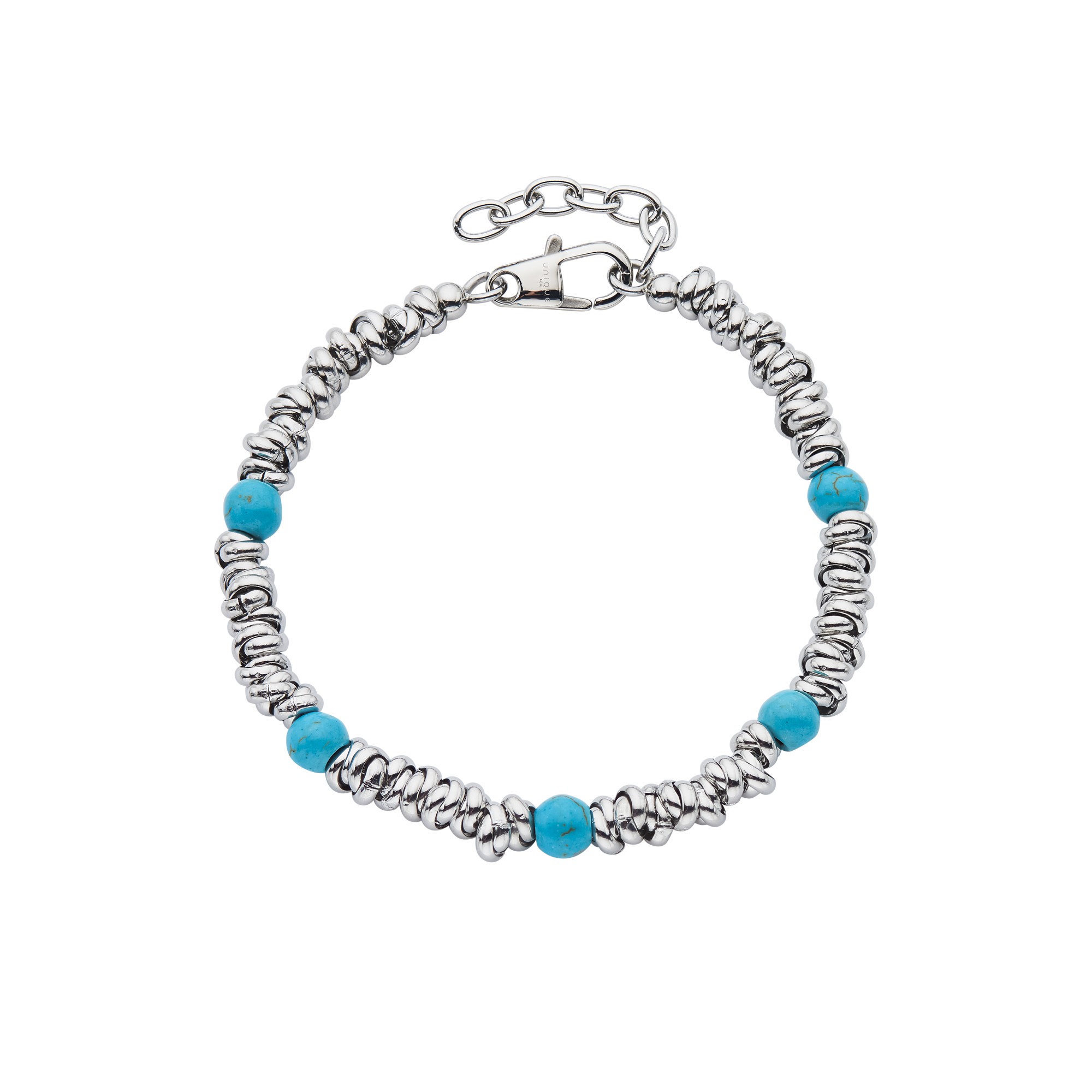 Stainless steel and turquoise bead bracelet. Measures 21cm in length.