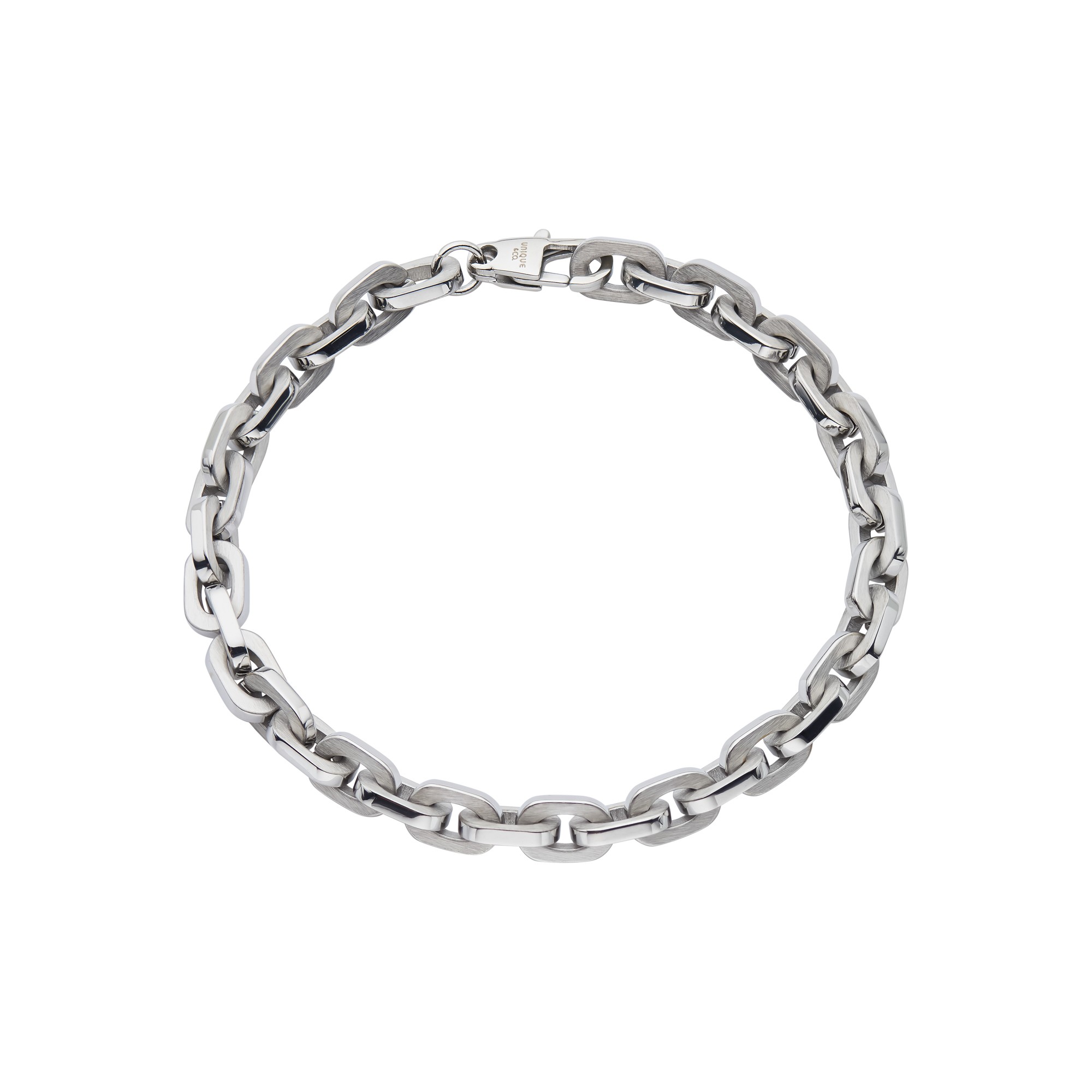 This 21cm bracelet features a bold square belcher chain design crafted from stainless steel, showcasing a sleek blend of matte and polished finishes. With its modern, masculine style and durable construction, it's a standout accessory for everyday wear or layered looks.