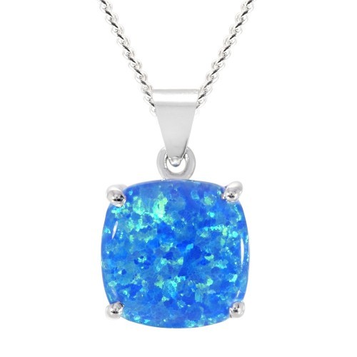 Sterling Silver and Blue Created Opal 10mm Cushion Claw Set Pendant with an 18" Sterling Silver Chain.