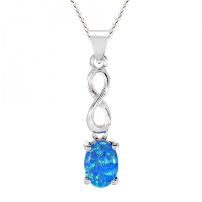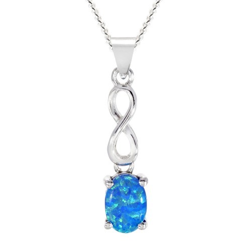 Sterling Silver and Blue Created Opal 10x8mm Pear Shaped Claw Set Pendant with an 18" Sterling Silver Chain.
