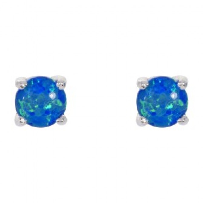 Sterling silver stud earrings with a claw set synthetic blue opal.
