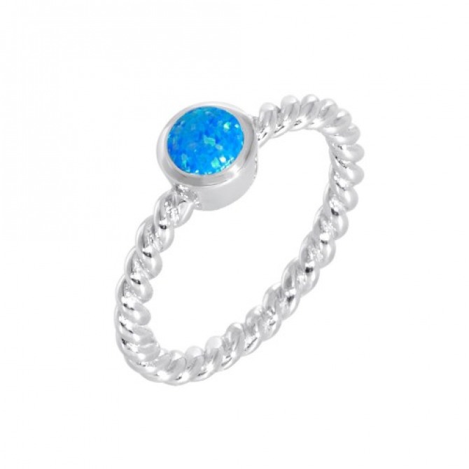 Sterling silver with blue created opal twist ring.