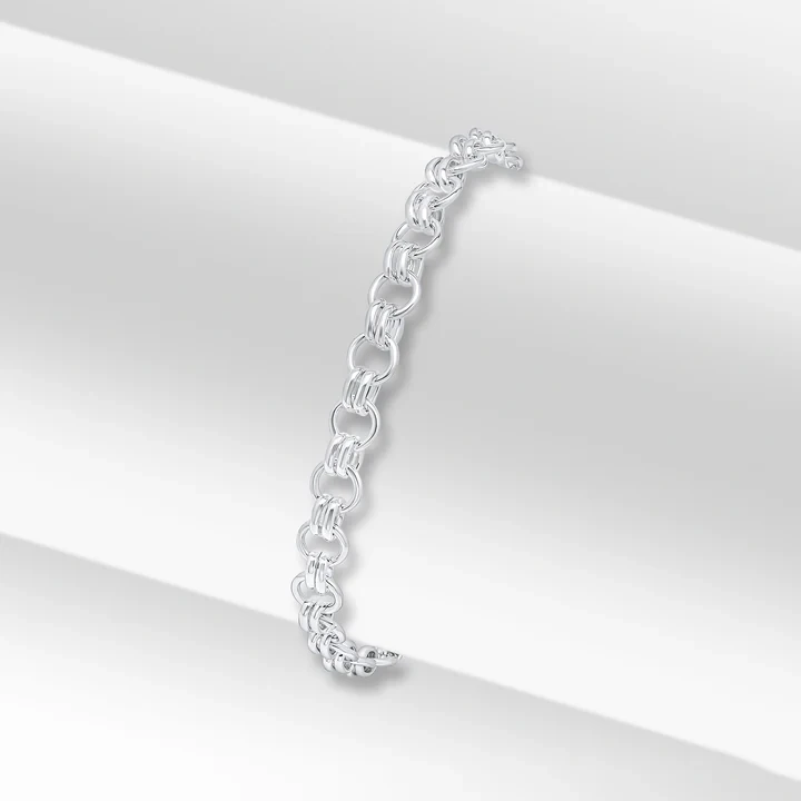 Sterling silver handmade two-one cable link bracelet with as lobster catch, 6.1mm wide, and 7 1/2" long.