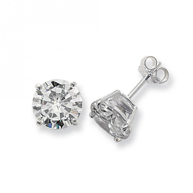 Sterling silver with 10mm round claw set cubic zirconia stud earrings.
