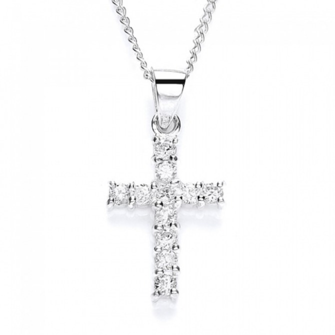 Sterling silver with cubic zirconia cross pendant on an 18" sterling silver chain.