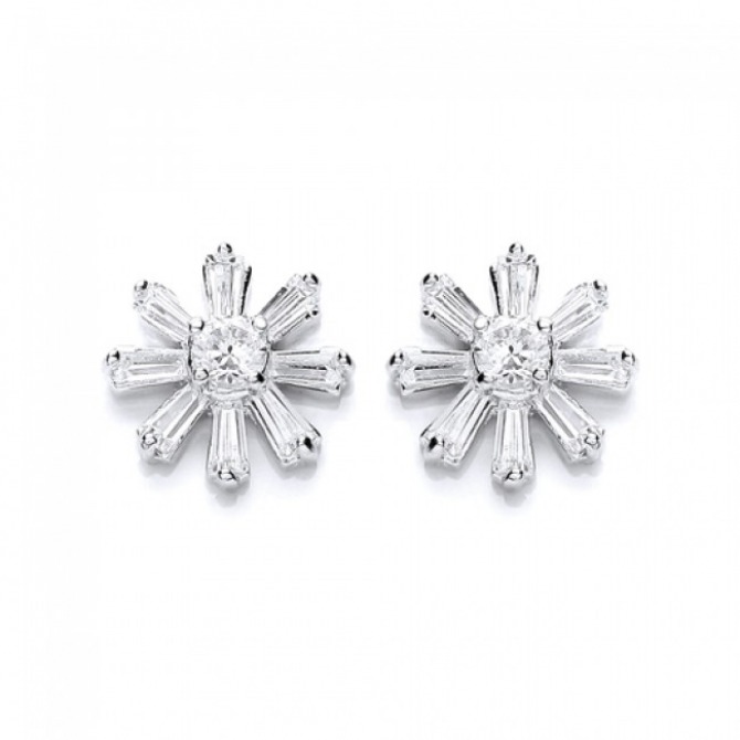 Sterling silver with cubic zirconia star shaped stud earrings.