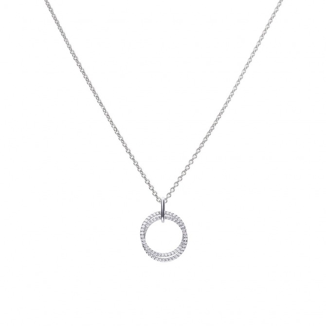 This dazzling intertwined circles pendant is perfect for adding extra sparkle to your outfit. Featuring Diamonfire cubic zirconia stones, cut specially with 57 facets just like a real brilliant cut diamond. Made from sterling silver with a triple plated finish of palladium, platinum and rhodium for an almost life-long tarnish protection. Pair with the matching earrings and bracelet for a glamourous co-ordinated look. All beautifully presented in exclusive silk packaging with gift bag.