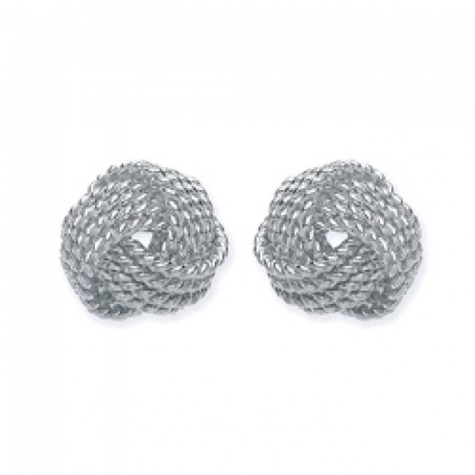Rhodium plated sterling silver stud earrings with a rope knot design.