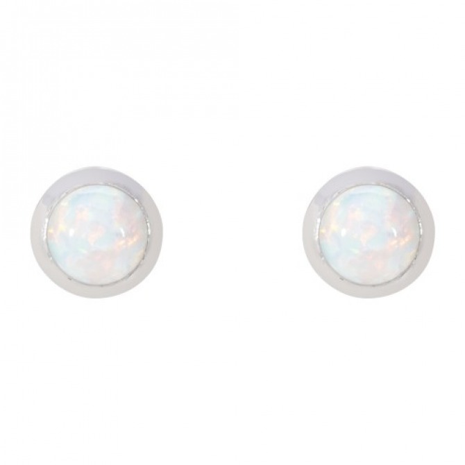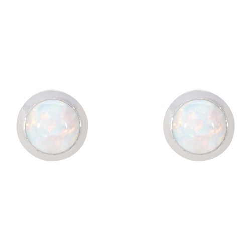 Sterling Silver & Created Opal 5mm Round Rub Set Stud Earrings.