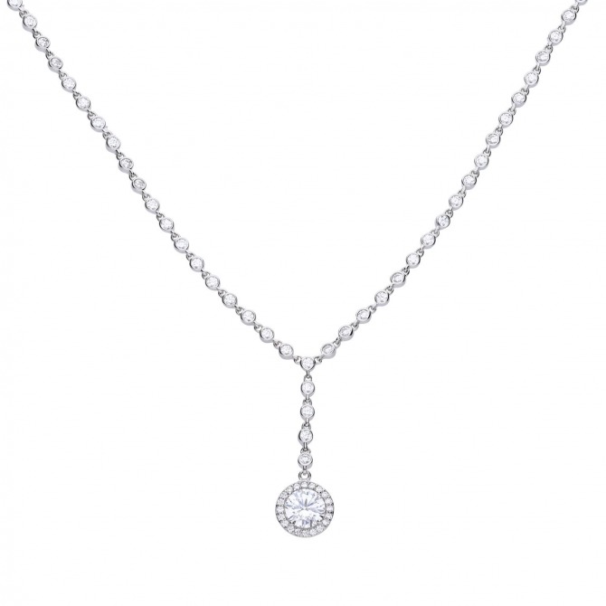 This stunning drop necklace features sparkling Diamonfire zirconia stones (3.65ct) and a total length of 43cm. Diamonfire cubic zirconia stones are cut specially with 57 facets, just like real brilliant cut diamonds. Each piece in the collection is crafted in sterling silver with a triple plated finish of palladium, platinum and rhodium, for an almost life-long tarnish protection. All purchases from the Diamonfire collection come with beautiful packaging including a jewellery box, branded gift bag and branded ribbon.