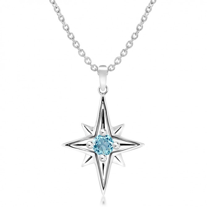 Sterling Silver Star with Blue Topaz Pendant & Chain
