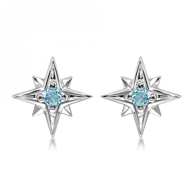 Sterling Silver Star with Blue Topaz Stud Earrings