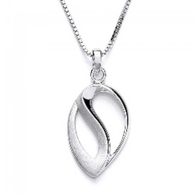 Sterling silver teardrop shaped pendant with a satin and gloss finish on an 18" sterling silver chain.