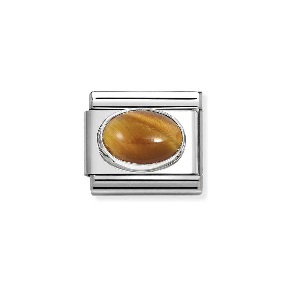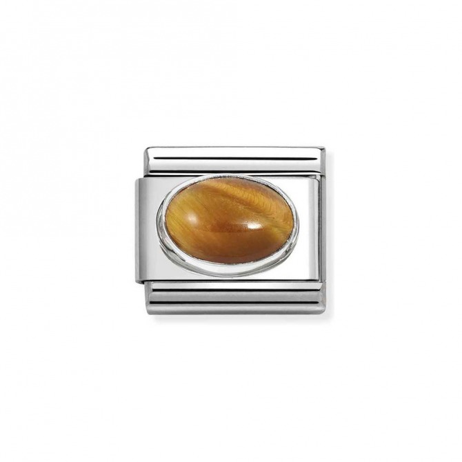 Nomination Composable Classic Oval Charm, stainless steel charm with a Tiger's Eye Stone and a Silver Surround.