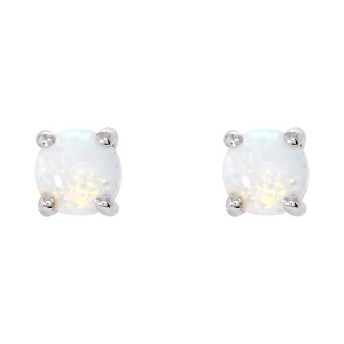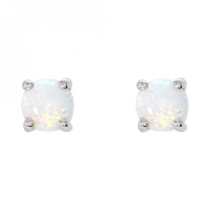 Silver White Synthetic Opal 5mm Round Claw Set Stud Earrings.