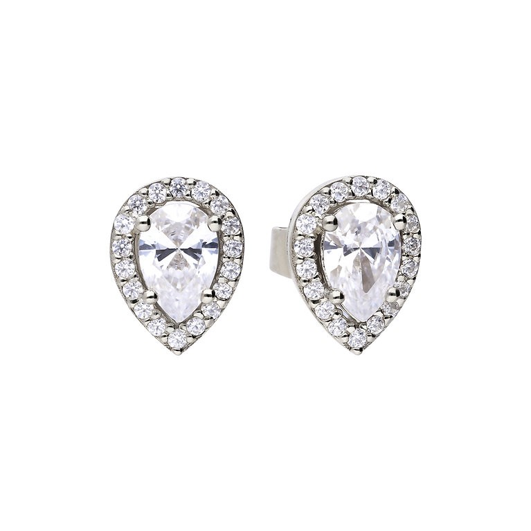 These modern and popular teardrop halo stud earrings are perfect for adding that extra sparkle to any outfit. Featuring Diamonfire cubic zirconia stones which are cut specially with 57 facets just like a real brilliant cut diamond. The product also is made from sterling silver with a triple plated finish of palladium, platinum and rhodium for an almost life-long tarnish protection.