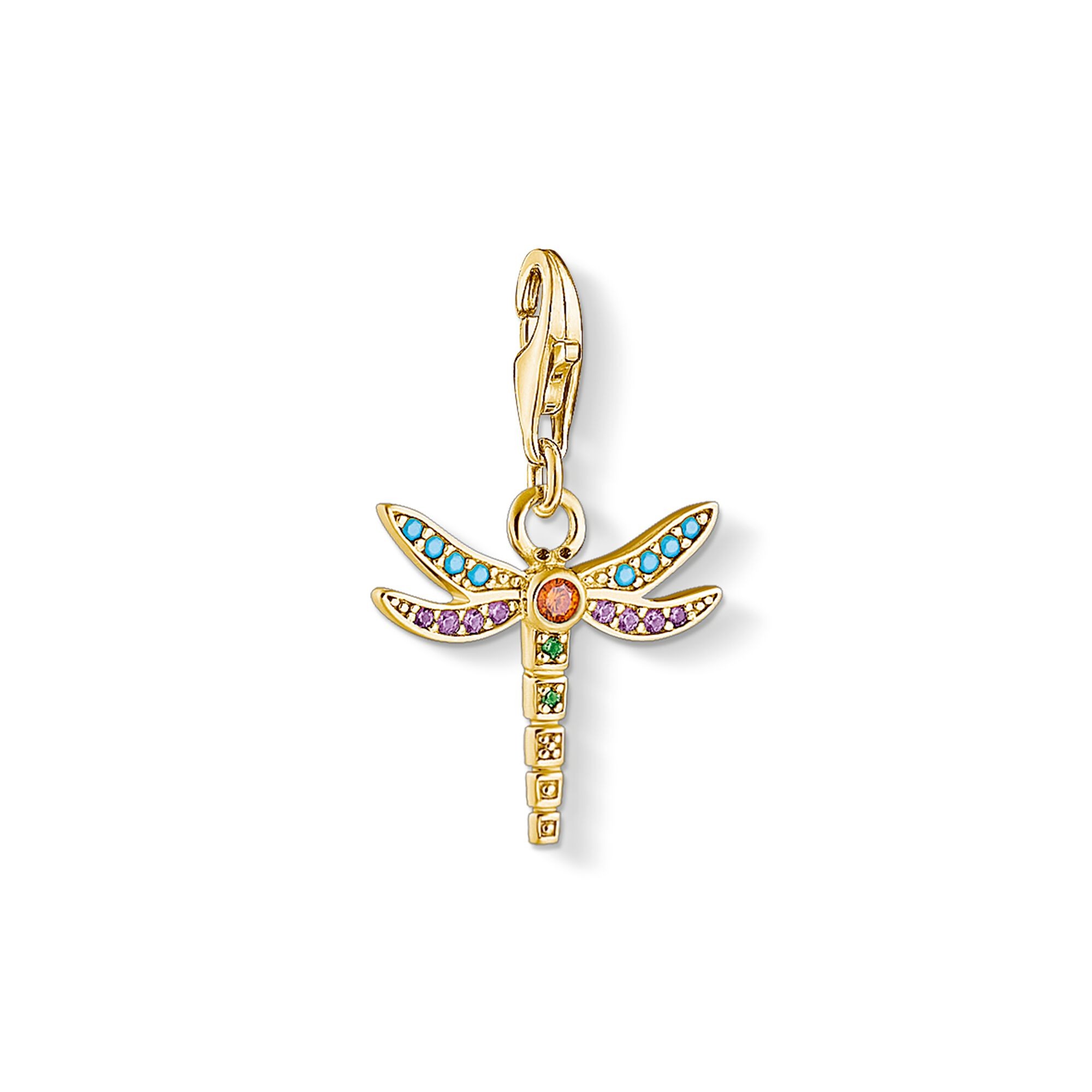 A journey to paradise: Creative, Boho-inspired and playful at the same time, the sterling silver with gold plate dragonfly Charm crafted in rich detail with colourful stone embellishment stands for lightness and positive energy.