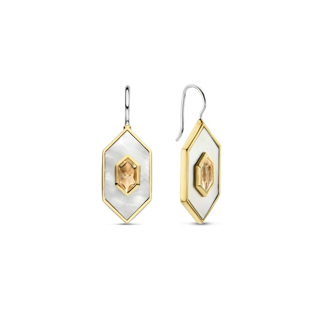 These TI SENTO gold-plated earrings 7941MW showcase dreamy mother of pearl and dainty nude pink stones handset in gold-plated settings. Their arty geometric shapes will add a modern classic touch to your look. These opulent earrings are crafted from the highest quality 925 sterling silver and then plated with yellow gold for an opulent and warm touch. The elegant combination of mother of pearl and nude pink stones creates a stunning visual contrast that elevates any outfit, whether day or night. They are statement pieces in the most subtle way possible. Put your hair up and let them steal the show. All our earrings are nickel-free and hypoallergenic.