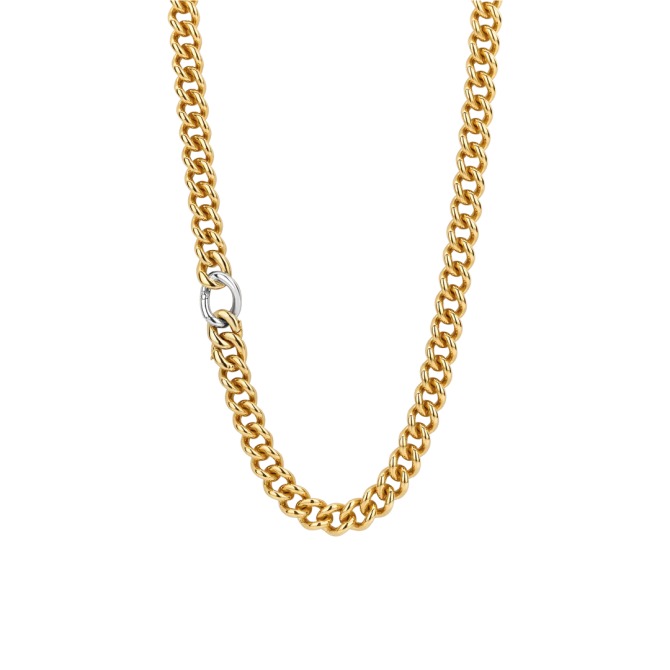 This TI SENTO gourmet silver necklace 3946ZI has a stream of silver links plated with a thick layer of gold. One of the links is plain silver to highlight her centrepiece closure. Wear her as your fashion statement piece.