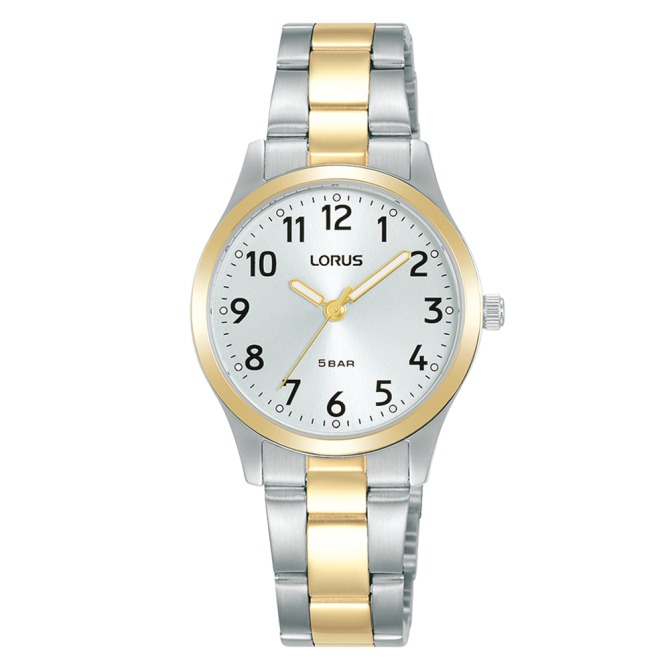 Designed for subtle elegance, this traditional watch features a soft dial that showcases a subtle sunray effect. The two toned stainless steel case and bracelet ensures durability whilst the lumibrite-coated hour hands and markers are visible even in low light.