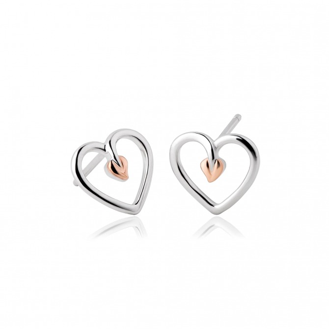Our iconic Tree of Life collection symbolises the relationship of all life on Earth. A combination of berries leaves and vines represent new life forms that intertwine and evolve from the old creating ever more beautiful designs with an elegant and organic style. The sterling silver and 9ct rose gold Tree of Life heart stud earrings express the infinite power and beautiful continuity of nature. Contains rare Welsh gold - the Gold of Royalty for over 100 years.
