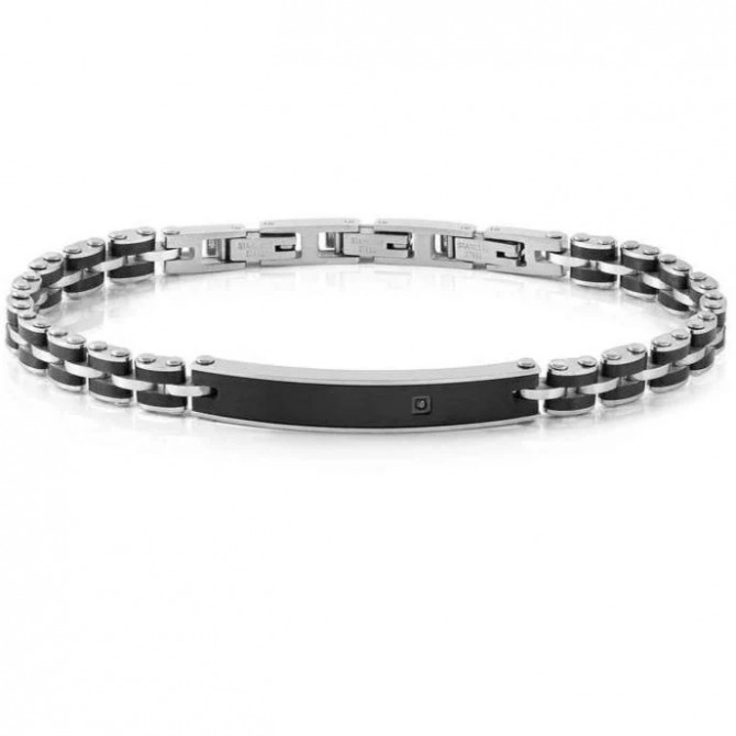 The Strong Diamond bracelet is available with an elegant Black PVD colour coated finish, sparkling with the light of a single White Diamond. This combination is not only sophisticated, but it also showcases the strength of stainless steel with the style savvy of a special PVD finish. The central White Diamond is eye-catching, making this jewel one-of-a-kind.