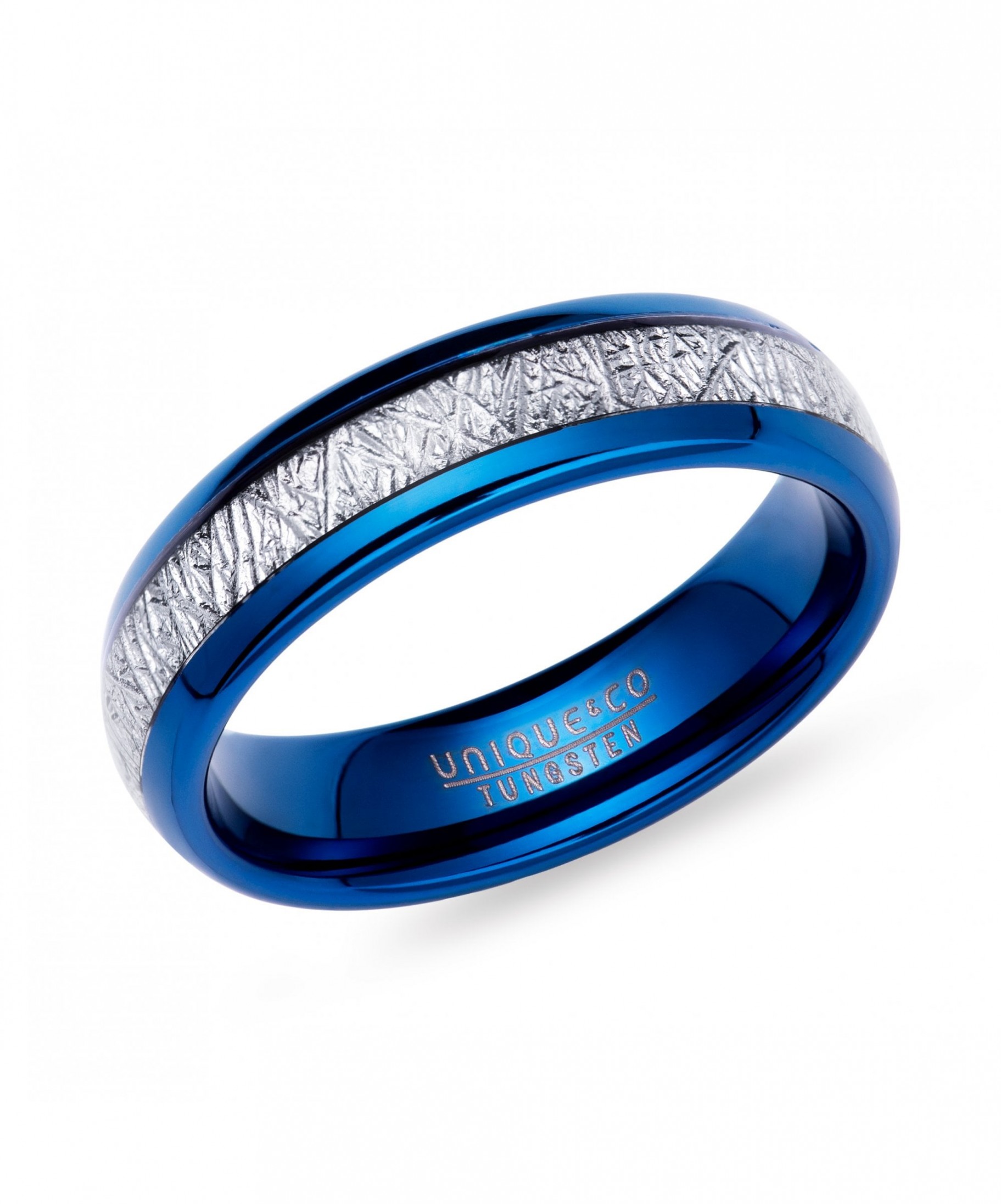Tungsten 6mm Blue Ring with Meteorite Inlay