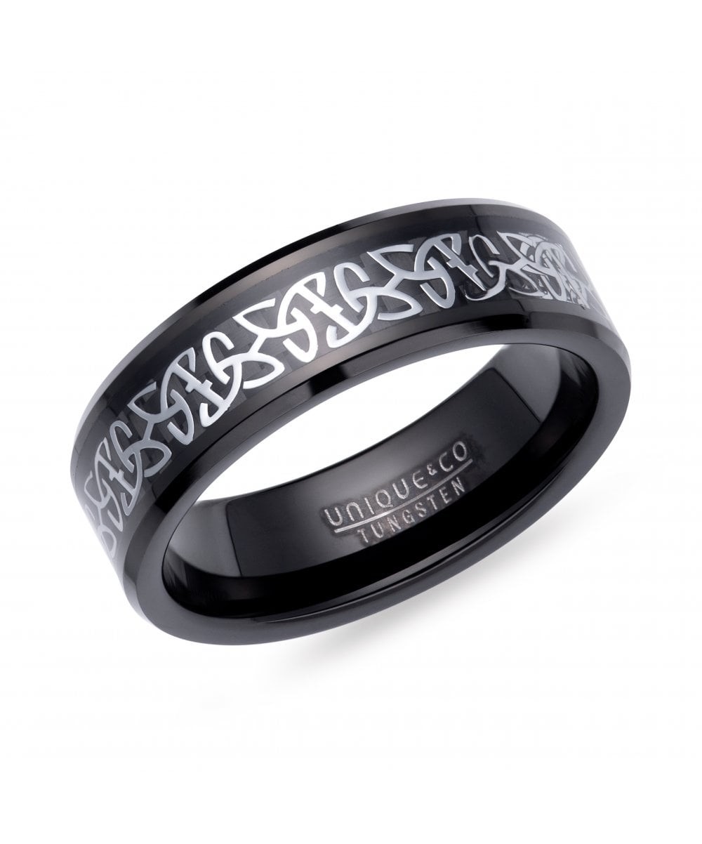 This stunning ring is made from Tungsten Carbide for unbeatable strength and durability. Black IP plated ring with polished finish and a silver centre patterned with a Celtic design. Perfect as a wedding ring or dress ring.