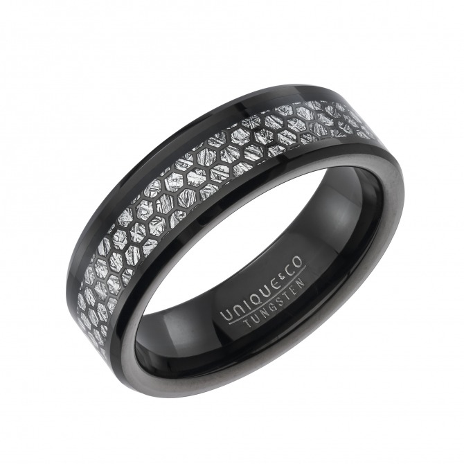 Tungsten Black 7mm Ring with Hneycomb Inlay