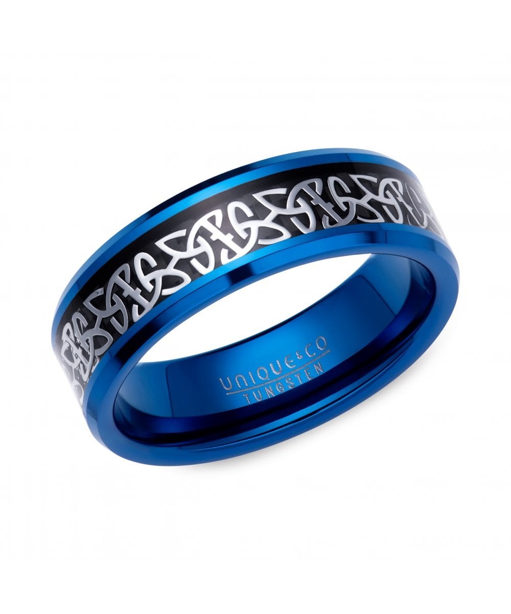 Tungsten Blue 7mm Ring with Celtic Inlay