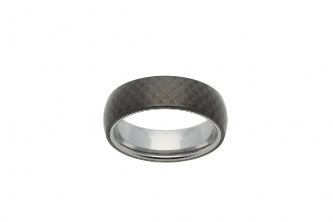 This striking ring features a flawless checked design adding a stylish touch to any occasion. Crafted in smooth tungsten with a black check carbon fibre coating this unique ring is fashionable and hard wearing.