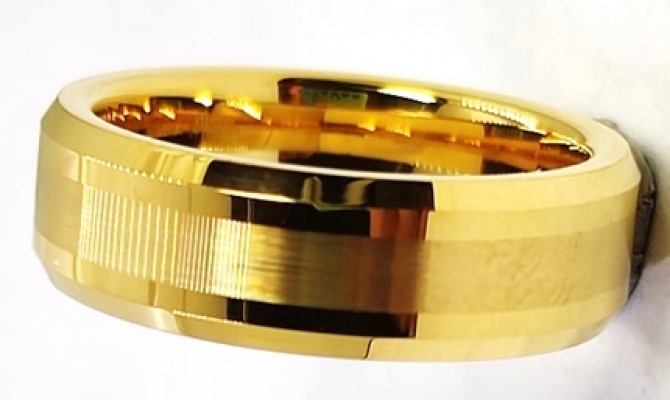 A gorgeous Unique & Co men's wedding band that makes a perfect addition to any ring finger. Crafted in Tungsten Carbide with a Polished Gold Plate finish. The band width is 7mm. Every wedding ring is accompanied with a presentation box.