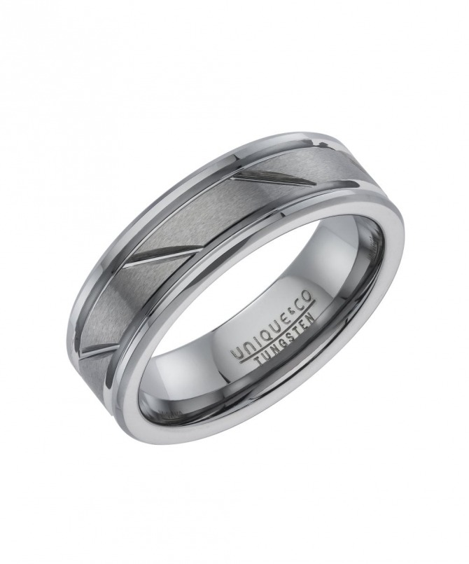 A gorgeous Unique & Co mens wedding band that makes a perfect addition to any ring finger. Crafted in Tungsten Carbide with a patterned finish. The band width is 7mm. Every wedding ring is accompanied with a presentation box.