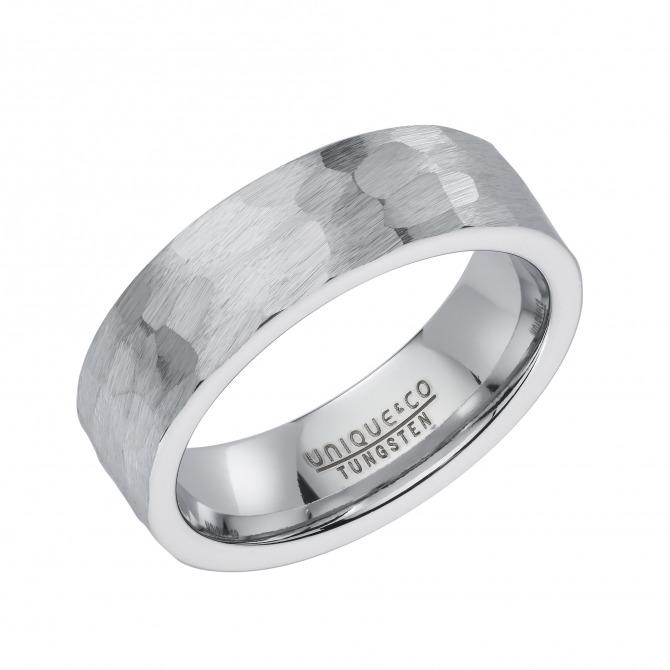 A gorgeous Unique & Co mens wedding band that makes a perfect addition to any ring finger. Crafted in Tungsten Carbide with a textured finish and brushed silver colour. Every wedding ring is accompanied with a presentation box.