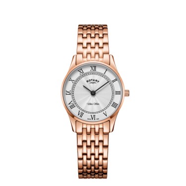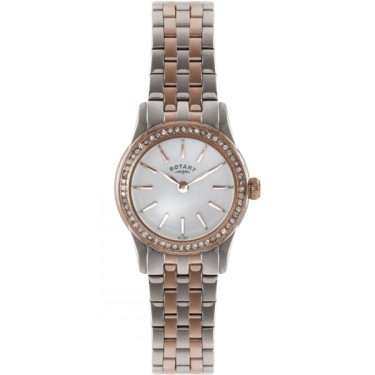 A stunning Rotary watch from the Verona Collection. Stainless steel lavishly coated in gold & crafted into this attractive timepiece. The round white dial features baton hour markers and a jewel encrusted bezel.